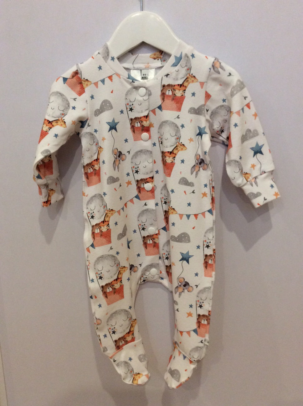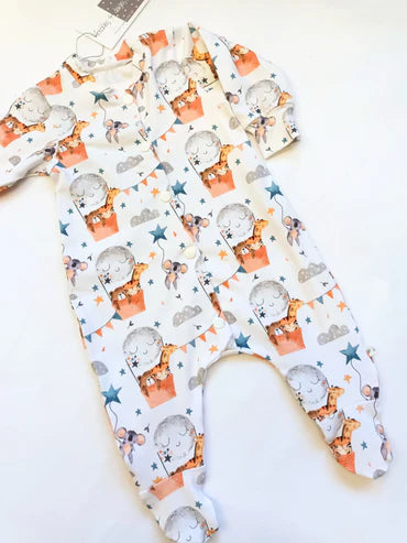 These full sleeve, footed rompers are press studded down front to the crutch for easy changing and are of a looser fit than our standard Romper shape.