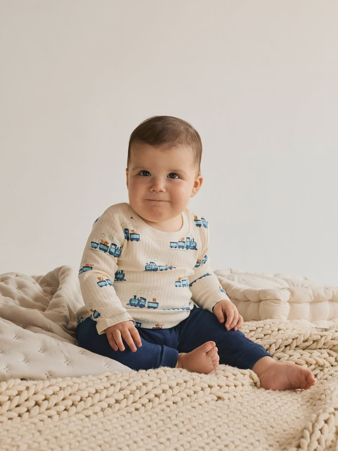 All aboard for everyday adventures with our 3-Pack Train Themed Long Sleeve T-Shirts! Made from soft ribbed cotton for extra comfort and breathability, these tops are designed to keep your little one cosy through playtime, naptime, and everything in between. With a playful mix of prints and colours, this set is as practical as it is adorable.